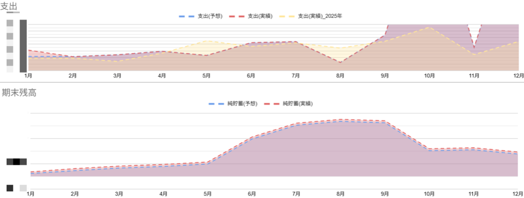 | 大型出費 | ✕ | テーマパークへお出かけ。若干の予算オーバーですが楽しめました |